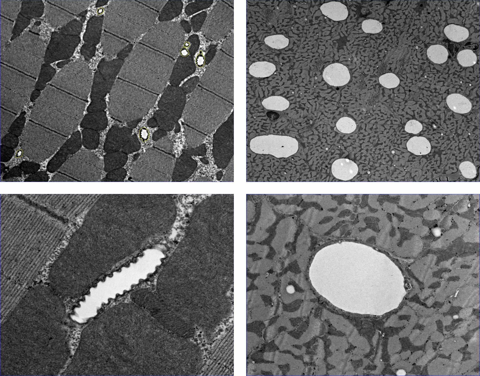 Under the electron microscope, thin slices of insect muscle (left) and mammal muscle (right) show the tracheoles and capillaries in white. Antoinette Lensink and Edward Snelling